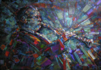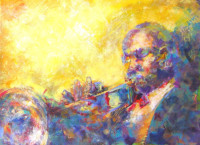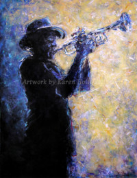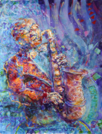Music is my passion, and I am deeply motivated to shining a light on the power of blues and jazz— both which have influenced so many other styles of popular music. My paintings strive to capture a moment within a tune: a wailing guitar solo, a haunting trumpet or a quiet moment after a big crescendo.
